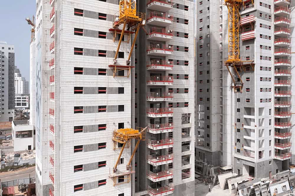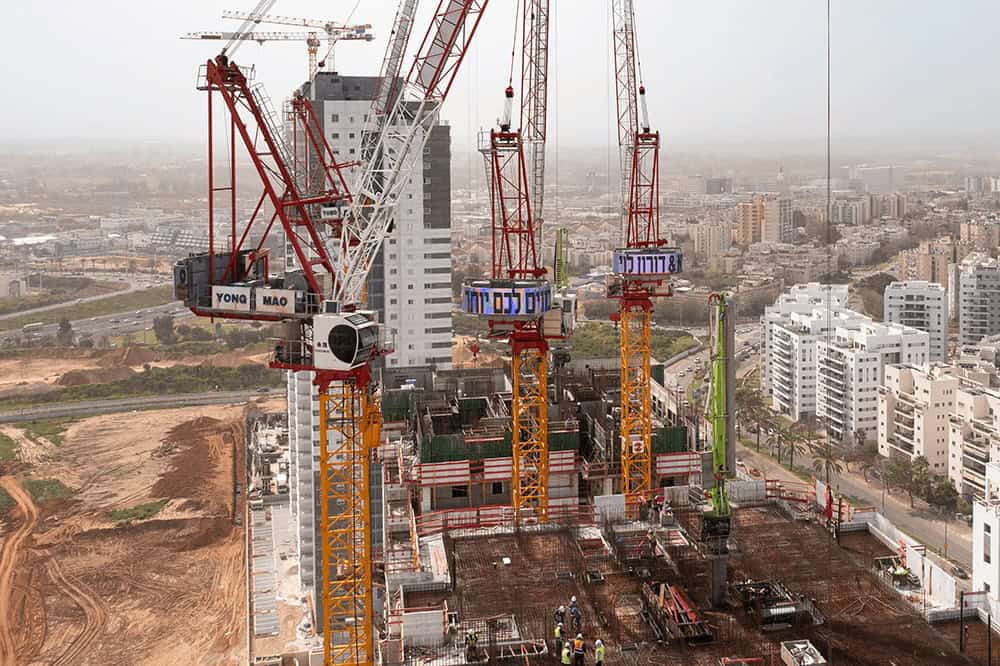פרויקט אגמים במערב נתניה כולל שני מגדלי מגורים בני 37 קומות ובהם 288 יחידות דיור. הפרויקט נבנה באמצעות ארבעה עגורני לאפינג מדגם Yongmao STL230.