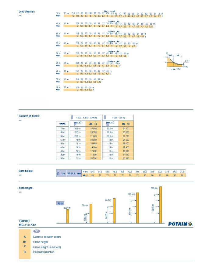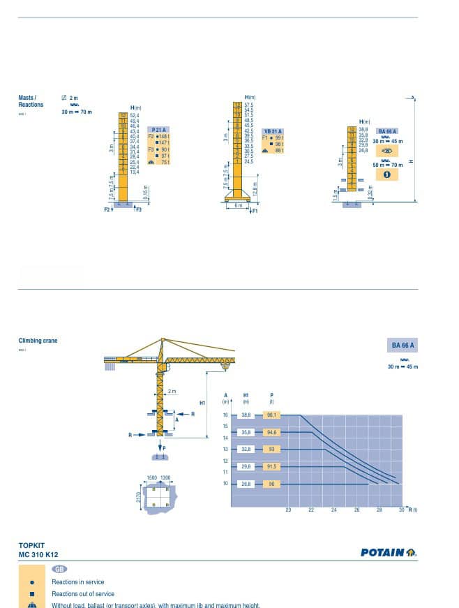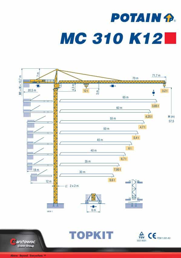 דף הבית / עגורני צריח / צריח שפיץ / Potain MC 310